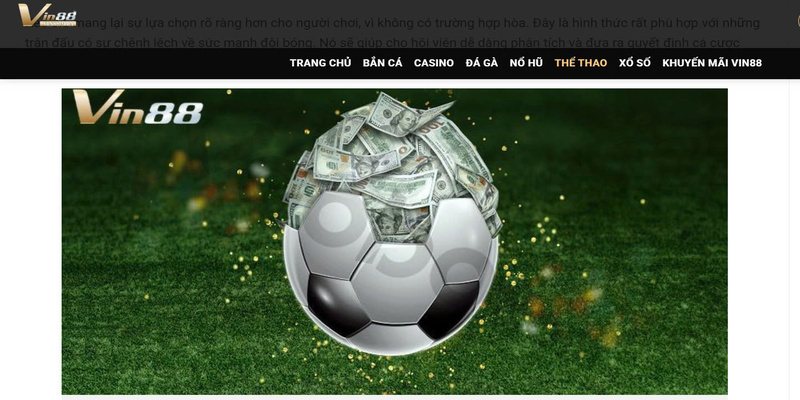 Đặc biệt, tỷ lệ chấp tại Vin 88 được xây dựng linh hoạt dựa trên từng diễn biến thực tế, mang lại cảm giác hồi hộp và kịch tính trong từng khoảnh khắc. Người chơi không chỉ được thỏa mãn niềm đam mê bóng đá mà còn có cơ hội tận hưởng cảm giác chiến thắng một cách trọn vẹn nhất.