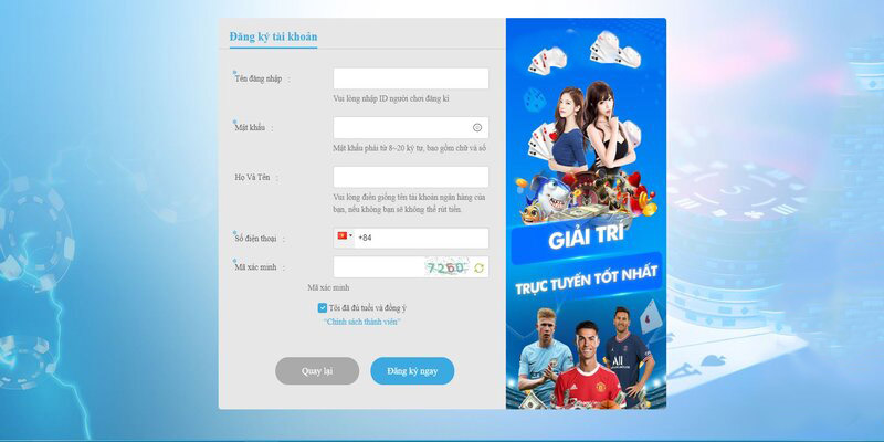 Email hoặc số điện thoại: Cung cấp địa chỉ email hoặc số điện thoại của bạn. Đây sẽ là phương tiện để nhà cái liên hệ và gửi thông tin xác nhận.
