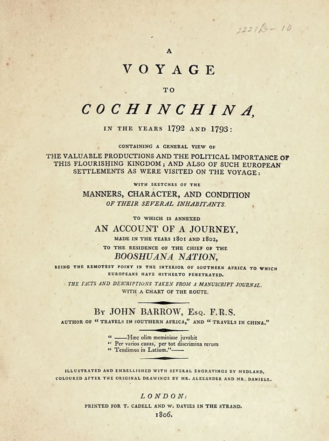 Nhà ngoại giao John Barrow, tác giả quyển A voyage to Cochinchina xuất bản tại London năm 1806