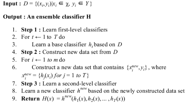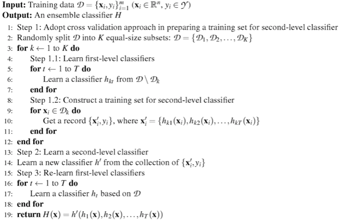 Pseudo code của Stacking được đưa ra lần đầu (mình không chắc lắm) bởi David H trong “Stacked generalization” năm 1992 (wow) và cũng là mô hình cơ bản nhất của Stacking.
