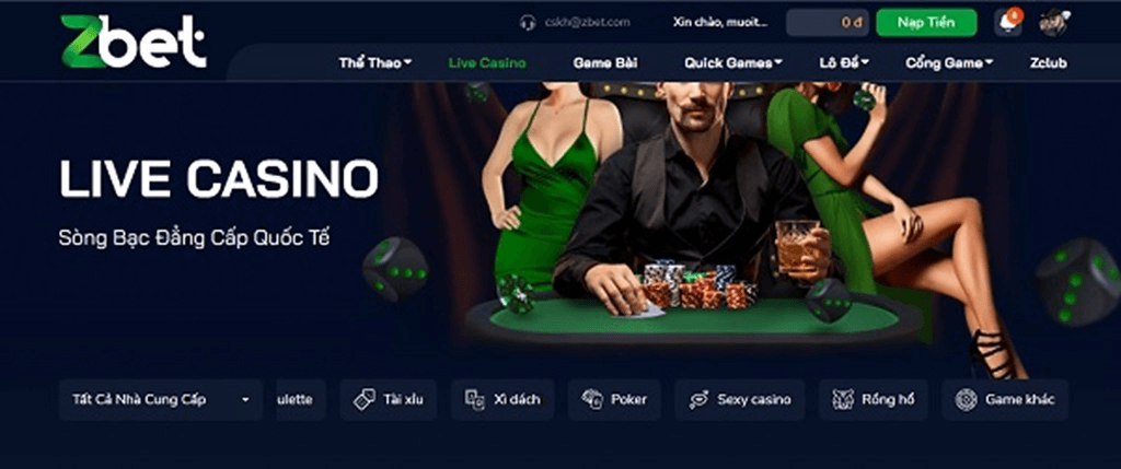 - Casino trực tuyến: Zbet cung cấp một loạt các trò chơi casino trực tuyến như blackjack, roulette, baccarat và slot machines. Bạn có thể tham gia vào các trò chơi này với các đại lý trực tiếp và trải nghiệm môi trường casino thực tế ngay từ nhà.